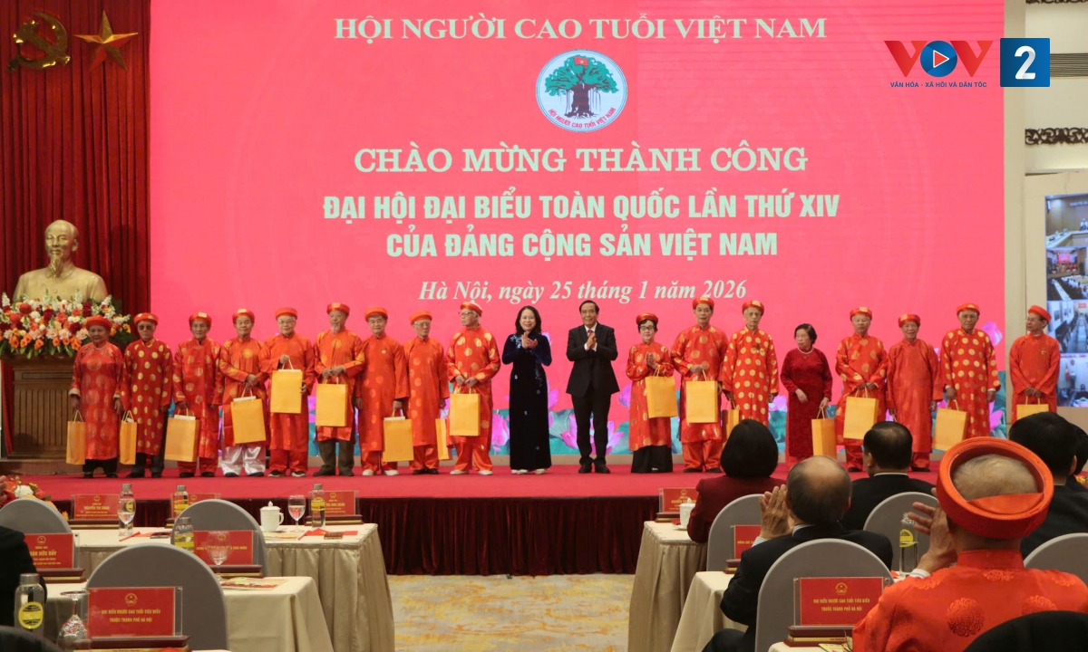 Trong không khí cả nước hân hoan chào mừng thành công Đại hội đại biểu toàn quốc lần thứ XIV của Đảng, tối ngày 25/1, tại Thủ đô Hà Nội, Ban Thường vụ Trung ương Hội Người cao tuổi Việt Nam đã long trọng tổ chức Chương trình nghệ thuật chào mừng với chủ đề “Hào khí Diên Hồng trong kỷ nguyên mới”, đồng thời trao quà tặng người cao tuổi tiêu biểu trong phong trào thi đua yêu nước lập thành tích chào mừng Đại hội Đảng các cấp và Đại hội XIV.