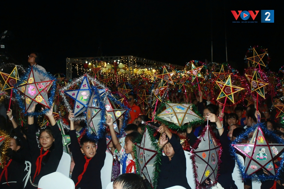 Hàng trăm chiếc đèn ông sao lung linh đã được thắp sáng tại sân khấu ngoài trời ở Pác Bó. Trong ánh trăng thu trong trẻo, tiếng trống hội rộn ràng vang lên, hòa cùng những nụ cười giòn tan của trẻ nhỏ. Các em thiếu nhi nơi biên giới đã có cơ hội được múa hát, xem các tiết mục văn nghệ, ảo thuật và phá cỗ Trung thu đầy đủ, sinh động như bao bạn nhỏ ở phố thị.