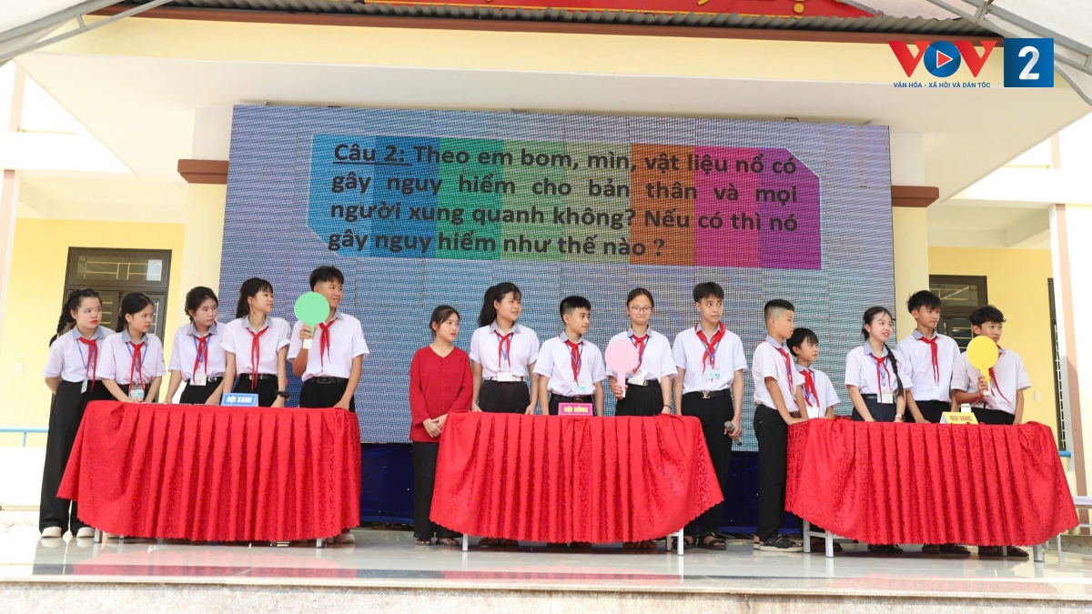 Các trường thành lập các đội thi trực tiếp trên sân khấu về những kiến thức cơ bản về bom mìn, vật liệu nổ; cách nhận biết và phòng tránh tai nạn bom mìn để không bị thương tật... đã tạo không khí sôi nổi, thu hút sự quan tâm của đông đảo nhân dân và học sinh.