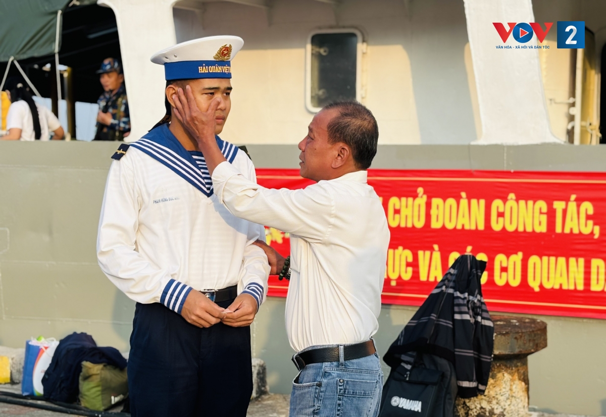 Hạ sĩ Phạm Hồng Đức Anh chia sẻ hồi hộp trước khi ra nhà giàn nhận nhiệm vụ có chút nhớ nhà. “Nay được ba tới tiễn mình xúc động”, Đức Anh giọng run run cảm xúc.