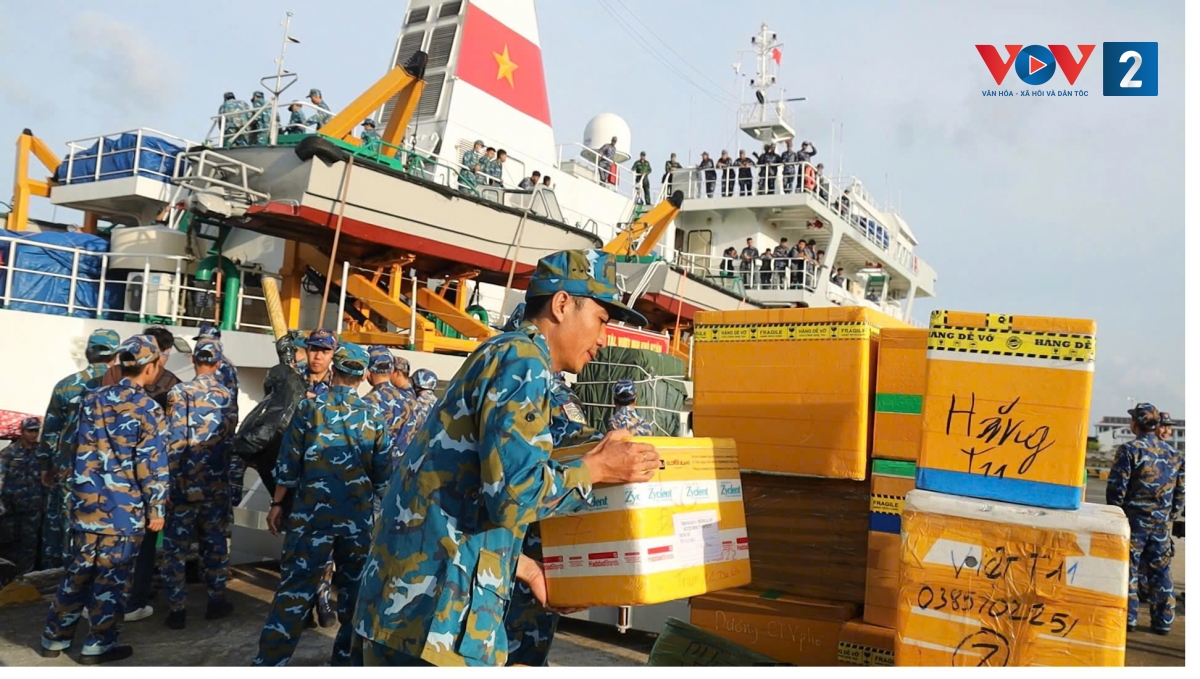 Trên cầu cảng, cán bộ, chiến sĩ tất bật đón những chuyến tàu tiếp tế cuối năm từ đất liền. Con tàu vượt hàng trăm hải lý mang theo nhu yếu phẩm, quà Tết, báo xuân, cây xanh và cả những lá thư tay chan chứa yêu thương của người thân, gia đình gửi ra đảo. Khi những kiện hàng được chuyển xuống cầu cảng, ai nấy đều cảm nhận rất rõ: mùa xuân đã thật sự chạm ngõ nơi đảo xa.