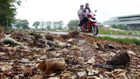 Đó là cụm từ mà mọi người thường nhắc đến khi nói về con đường liên thôn ở xã Hải Bối, huyện Đông Anh, Hà Nội. Bởi lẽ ở đây, đã từ nhiều năm nay rồi, xương, nội tạng động vật… luôn vương vãi khắp nơi, ruồi nhặng, giòi bọ bâu kín, bốc mùi hôi thối... Người dân kêu cứu, nhưng không hiểu sao tình trạng này vẫn diễn ra thường xuyên, gây ảnh hưởng nghiêm trọng đến đời sống sinh hoạt của bà con. Chương trình Nhiệt kế xã hội trên VOV2 ngày 10/4. (Ảnh: Tiền phong)
