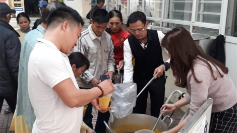 Với quan niệm “Danh lợi, tiền của chỉ là thoảng qua như mây khói, sinh không mang theo đến, chết không mang theo đi”, nhiều năm nay, anh Tô Vĩnh Diện, giám đốc một công ty tại Hà Nội không chỉ chi tiền, mà còn dành cả thời gian, công sức để nấu cháo rồi trực tiếp đi phát cho người bệnh tại Bệnh viện K, Hà Nội. Cùng gặp gỡ người giám đốc có tấm lòng hảo tâm trong chương trình Đời như cổ tích phát trên VOV2 ngày 7/4. (Ảnh: VOV2)