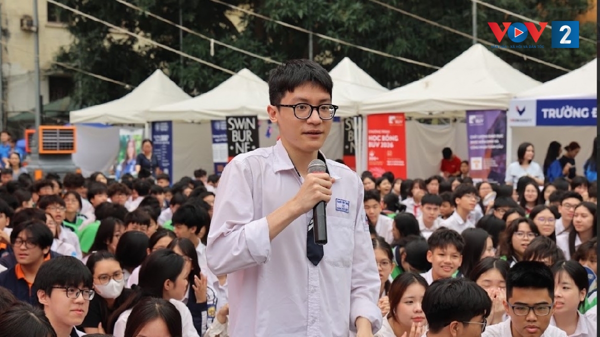 Được các giáo viên tạo điều kiện về thời gian, Phạm Quang Minh, học sinh lớp 12 trường THPT Nguyễn Trãi, phường Giảng Võ, Hà Nội tham gia Ngày hội hướng nghiệp 2026 ở trường bạn đầy hứng thú. Những thông tin Minh tìm hiểu còn những phần chưa sáng rõ thì hôm nay, bạn có cơ hội gặp gỡ trực tiếp không chỉ các trường dự định sẽ đăng kí vào mà còn cả các chuyên gia giáo dục, lãnh đạo ngành giáo dục để có được những chỉ dẫn dễ hiểu nhất.