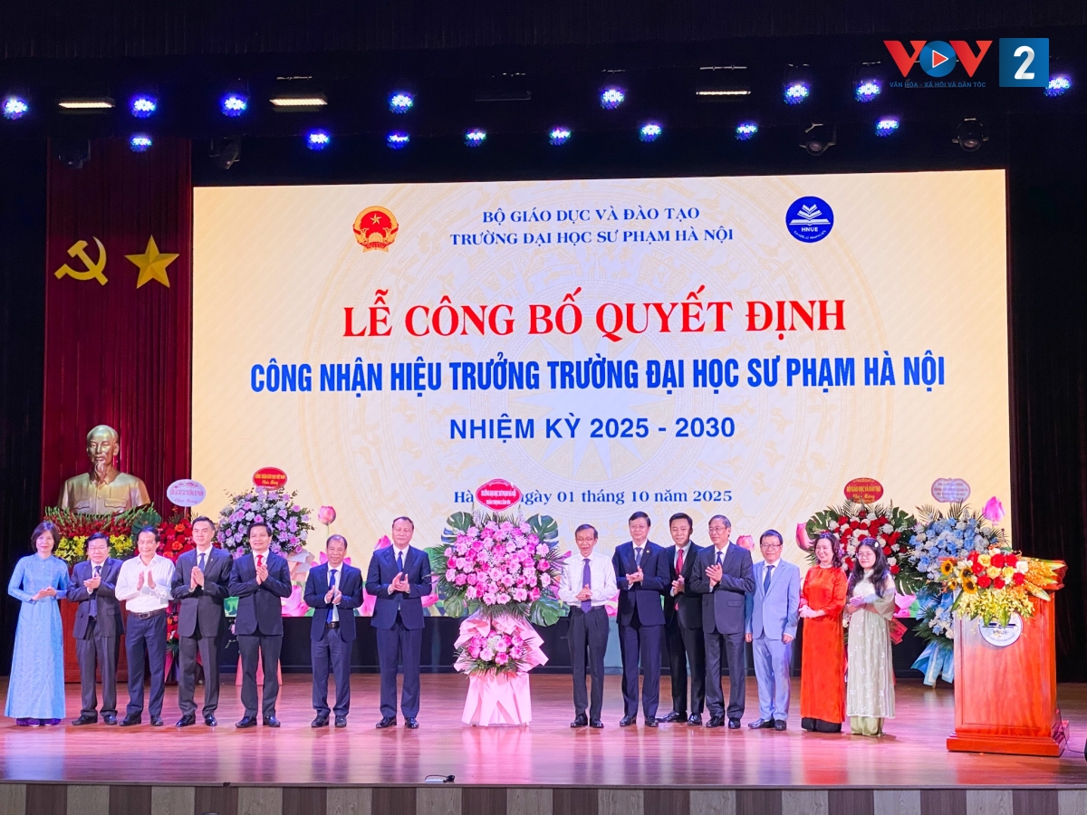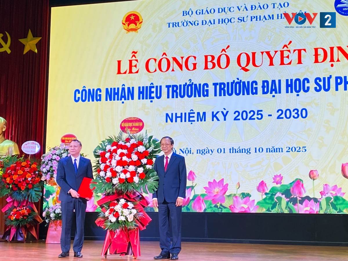 Thay mặt lãnh đạo Bộ Giáo dục và Đào tạo, Thứ trưởng Phạm Ngọc Thưởng trao Quyết định công nhận PGS.TS Nguyễn Đức Sơn đảm nhiệm cương vị Hiệu trưởng Trường ĐHSPHN nhiệm kì 2025 - 2030.