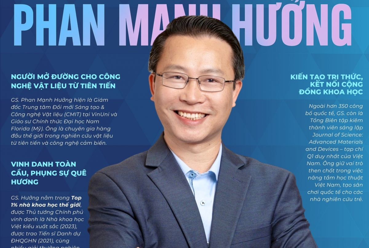 GS. Phan Mạnh Hưởng hiện là Giám đốc Trung tâm Đổi mới Sáng tạo và Công nghệ Vật liệu (CMIT) tại VinUni, đồng thời là Giáo sư Chính thức tại Đại học Nam Florida, Mỹ.