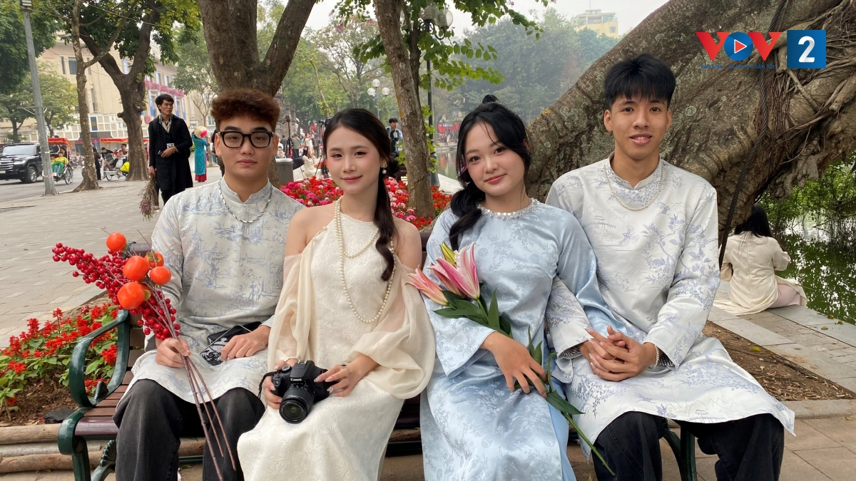 Suốt gần 2 tháng nay, sau đợt Hà Nội chỉnh trang, sơn sửa nhiều hạng mục, trồng thêm hoa cây cảnh quanh Bờ Hồ, sẵn sàng cho những sự kiện trọng đại và đón mừng năm mới dương lịch 2026, âm lịch Bính Ngọ, khu vực này bỗng trở thành một studio ngoài trời khổng lồ, mỗi ngày đón không biết bao nhiêu người đến chụp ảnh kỉ niệm. Nhiều nhất có lẽ là các bạn trẻ trong trang phục áo dài truyền thống vả cả cách tân đứng tạo dáng kín nhiều quãng đường.