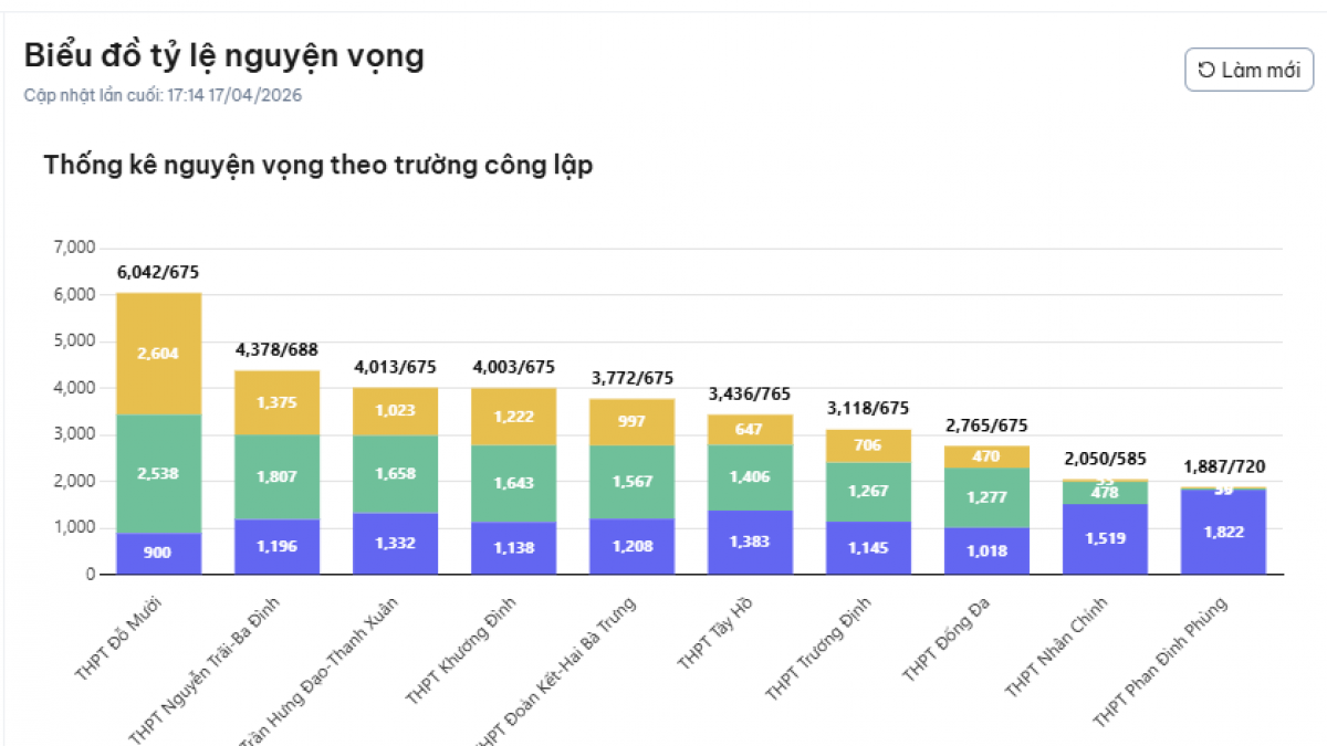 Trong khi đó, nhóm trường top đầu như THPT Yên Hòa, THPT Kim Liên, THPT Phan Đình Phùng, THPT Nguyễn Gia Thiều, THPT Việt Đức vẫn giữ lượng đăng ký nguyện vọng 1 cao và tỷ lệ chọi ổn định hơn do học sinh đã tự sàng lọc năng lực trước khi nộp hồ sơ.