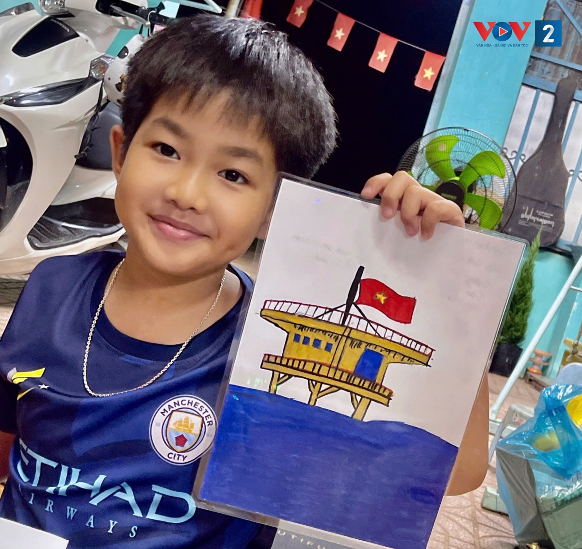 Với Khang, nhà giàn không chỉ là hình ảnh trên sách báo. Đó còn là nơi ba em từng công tác. Từ những câu chuyện ba kể, cậu học trò nhỏ đã hoàn thành bức vẽ chỉ trong một đêm.