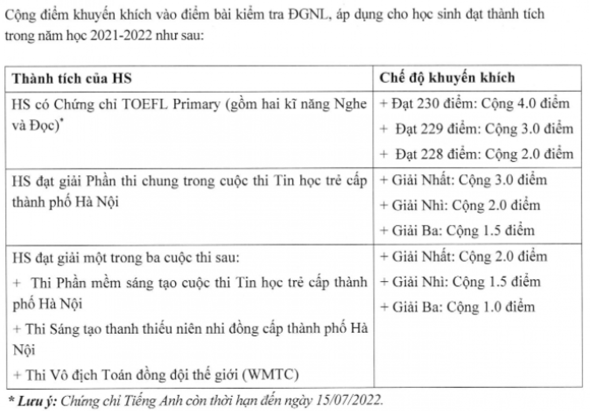 Tuyển thẳng: Tuyển thẳng học sinh đạt thành tích trong năm học 2021-2022: Học sinh đạt giải nhất một trong các môn Toán, Vật lý, Hóa học bằng tiếng Anh trong kỳ thi học sinh giỏi cấp tỉnh, thành phố trực thuộc trung ương. (Thời gian nhập học từ 1/7/2022 đến 5/7/2022).