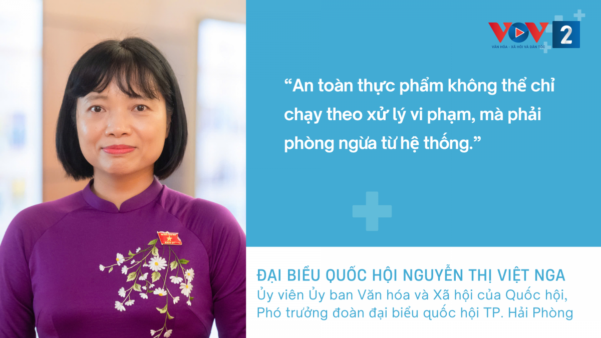 Theo các đại biểu Quốc hội, nếu chỉ dừng lại ở việc xử lý từng vụ việc riêng lẻ, thì sẽ rất khó kiểm soát rủi ro một cách căn cơ. Yêu cầu đặt ra là phải chuyển mạnh sang phòng ngừa, siết chặt từ thể chế đến thực thi, đặc biệt là vai trò của chính quyền địa phương và trách nhiệm của các chủ thể tham gia sản xuất và kinh doanh thực phẩm. Về những tồn tại của công tác an toàn thực phẩm trong năm qua, cũng như các ưu tiên cần đặt ra trong năm 2026, VOV2 đã có cuộc trao đổi với đại biểu Quốc hội Nguyễn Thị Việt Nga – Ủy viên Ủy ban Văn hóa và Xã hội của Quốc hội, Phó trưởng đoàn đại biểu quốc hội thành phố Hải Phòng: