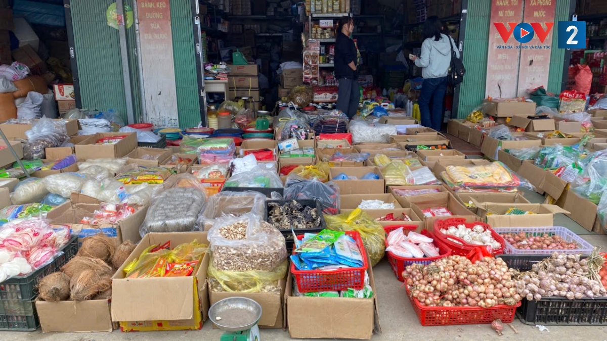 Những ngày này, tại chợ Bến Đền, xã Gia Phú, tỉnh Lào Cai, không khí mua bán diễn ra nhộn nhịp. Các quầy hàng thực phẩm liên tục nhập thêm hàng để phục vụ nhu cầu mua sắm, tích trữ của người dân dịp Tết.