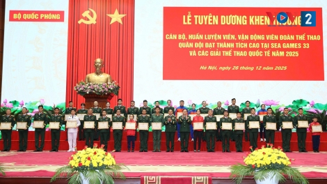 [VOV2] - Ngày 2612, Bộ Quốc phòng tổ chức Lễ tuyên dương, khen thưởng cán bộ, huấn luyện viên, vận động viên Đoàn Thể thao Quân đội đạt thành tích xuất sắc tại Đại hội Thể thao Đông Nam Á lần thứ 33 (SEA Games 33) và các giải thể thao quốc tế năm 2025.
