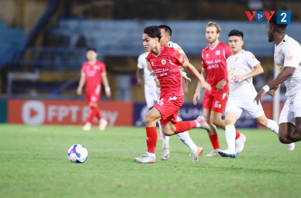 Ngay sau tiếng còi khai cuộc, khung thành Hồng Lĩnh Hà Tĩnh liên tục chao đảo trước những pha tấn công dồn dập của chủ nhà Công an Hà Nội. Lần lượt Quang Hải, Đình Bắc và Alves Rogerio đều có cơ hội thử tài thủ môn Thanh Tùng, song phải tới phút 25, thế cân bằng mới bị phá vỡ.