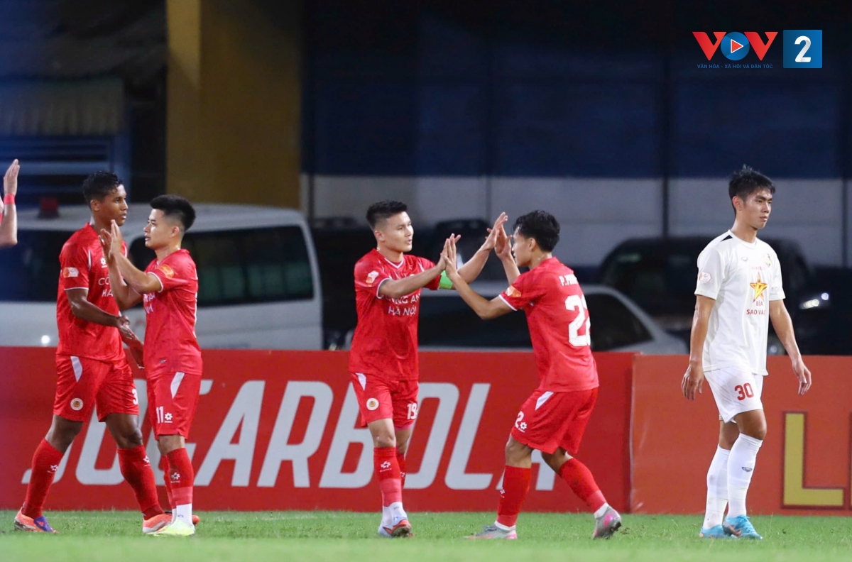 Sang hiệp hai, sức ép tiếp tục được duy trì. Phút 51, từ pha phối hợp trung lộ, Alves Rogerio tung cú sút chạm chân hậu vệ Hà Tĩnh, khiến bóng đổi hướng đi vào lưới, nhân đôi cách biệt 2-0. Đến phút 81, Quang Hải khép lại ngày thi đấu ấn tượng của mình bằng cú sút xa không thể cản phá, ấn định chiến thắng 3-0 cho Công an Hà Nội.