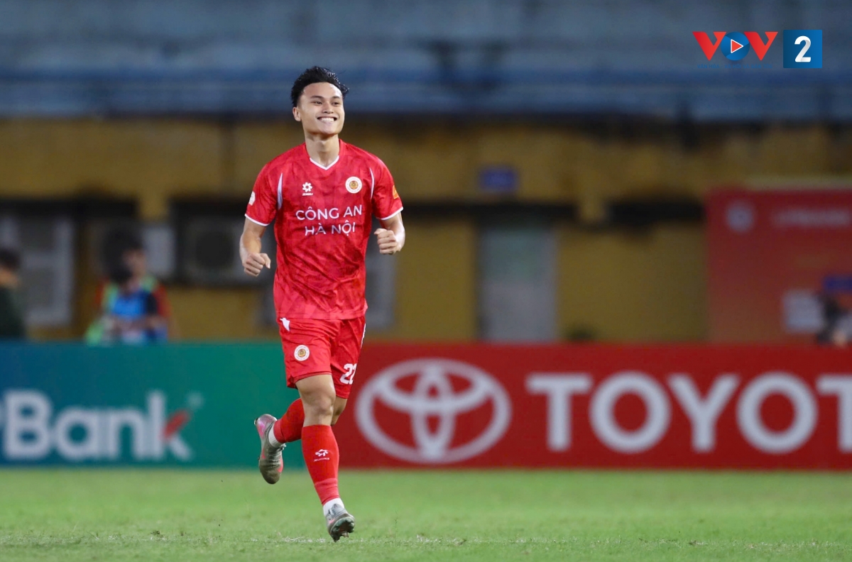 Minh Phúc — cầu thủ trẻ được HLV Polking tin tưởng xếp đá chính — băng xuống phá bẫy việt vị và dứt điểm tinh tế mở tỷ số cho đội bóng Thủ đô. Bàn thắng giúp Công an Hà Nội chơi càng hưng phấn, trong khi Hà Tĩnh gần như chỉ biết chống đỡ.