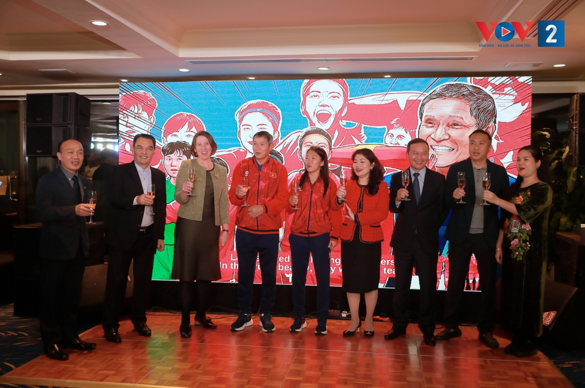 Buổi tiệc khép lại với nghi thức nâng ly chúc mừng giữa đại diện đội tuyển và các vị khách mời, thể hiện sự sẵn sàng của Đội tuyển nữ Việt Nam trước một trong những giải đấu quan trọng nhất của bóng đá nữ châu Á. Không khí chương trình thêm phần sôi động với các hoạt động giao lưu, đố vui xoay quanh văn hóa, con người Australia – Việt Nam và Giải vô địch bóng đá nữ châu Á 2026.