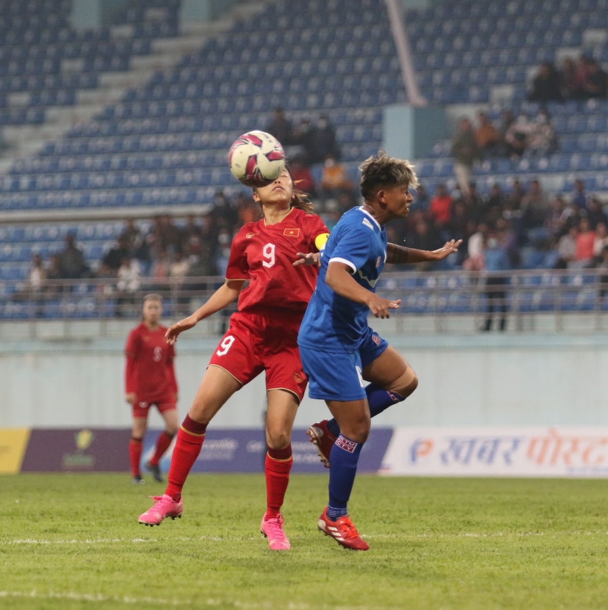 Chỉ sau hơn 5 phút thi đấu, đoàn quân của ông Mai Đức Chung đã khai thông thế bế tắc. Từ tình huống đá phạt góc, hàng thủ của Nepal không ng được Hải Yến khống chế bằng đầu rồi đưa bóng đến sát cột dọc trước khi thẩy bóng vào lưới Nepal trong sự bất lực của thủ môn Sabba. Một phút sau, nhận đường chuyền của Thu Thảo bên cánh phải, Hải Yến thoát xuống ở trung lộ trước khi tung cú dứt điểm nâng tỷ số lên 2-0 cho đội nhà.