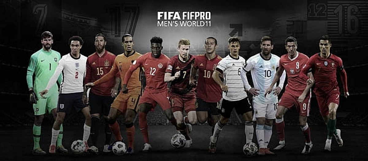 Alisson Becker; Trent Alexander-Arnold, Virgil van Dijk, Sergio Ramos, Alphonso Davies; Joshua Kimmich, Kevin De Bruyne, Thiago Alcantara; Lionel Messi, Robert Lewandowski, Cristiano Ronaldo.