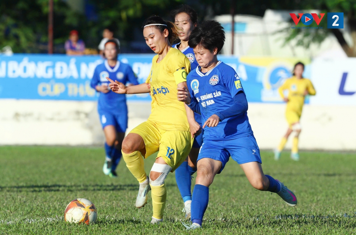 Hà Nội vẫn là đội nhập cuộc tốt hơn trong cuộc đối đầu với Than Khoáng sản Việt Nam. Đội bóng thủ đô tạo ra nhiều cơ hội nguy hiểm, trong đó đáng chú ý là tình huống ở phút 16: cú sút của Hải Yến đưa bóng chạm xà, bật vào tay hậu vệ đối phương trong vòng cấm. Chính Hải Yến đã thực hiện thành công quả 11m, mở tỷ số 1-0.