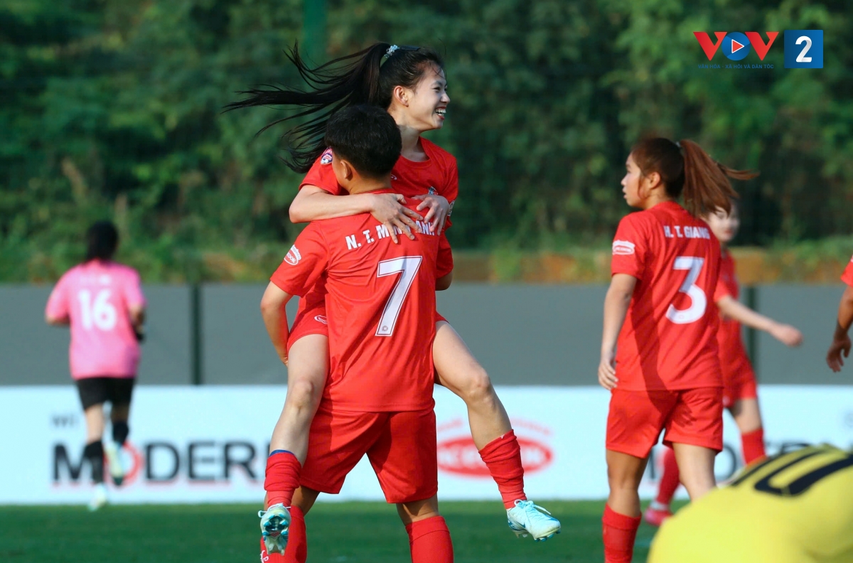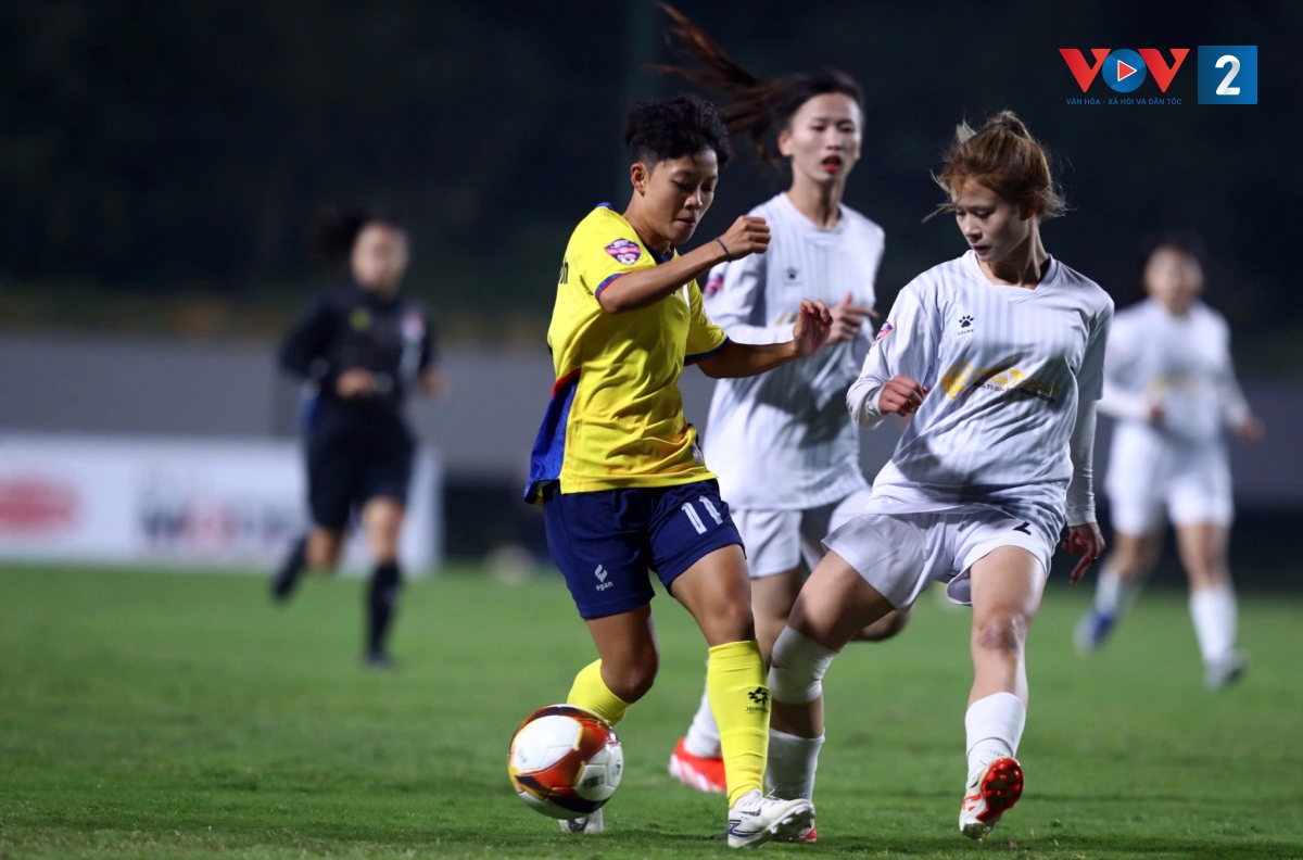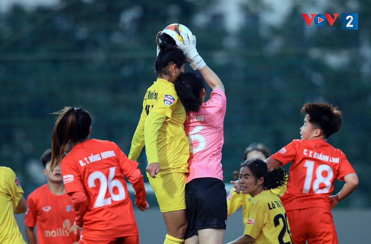 Phút 37, Ngân Thị Thanh Hiếu tung cú sút xa từ ngoài vòng cấm, đưa bóng đi gọn và hiểm, mở tỷ số cho Phong Phú Hà Nam. Bàn thắng đẹp mắt giúp đội bóng áo xanh nắm lợi thế trước giờ nghỉ và tạo đà tâm lý cho hiệp đấu thứ hai.