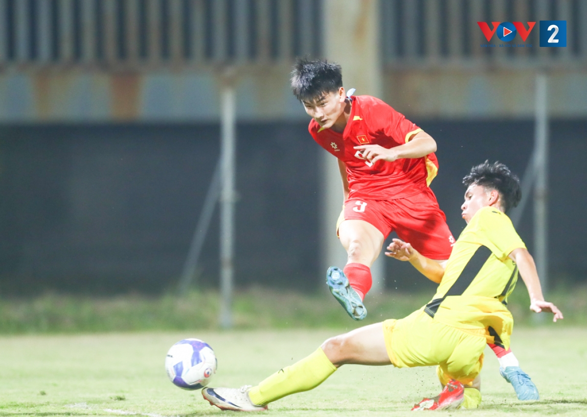 U17 Việt Nam sớm tạo ra sức ép đáng kể lên phần sân đối phương. Ngay phút thứ 3, Quý Vương có pha xâm nhập vòng cấm nguy hiểm, trước khi Văn Dương thử vận may bằng cú sút xa ở phút thứ 6 nhưng bóng đi chệch cột dọc. Đến phút 11, Văn Dương tiếp tục có cơ hội đối mặt sau tình huống tranh chấp thành công với hậu vệ Malaysia, song không thể đánh bại thủ môn đối phương.