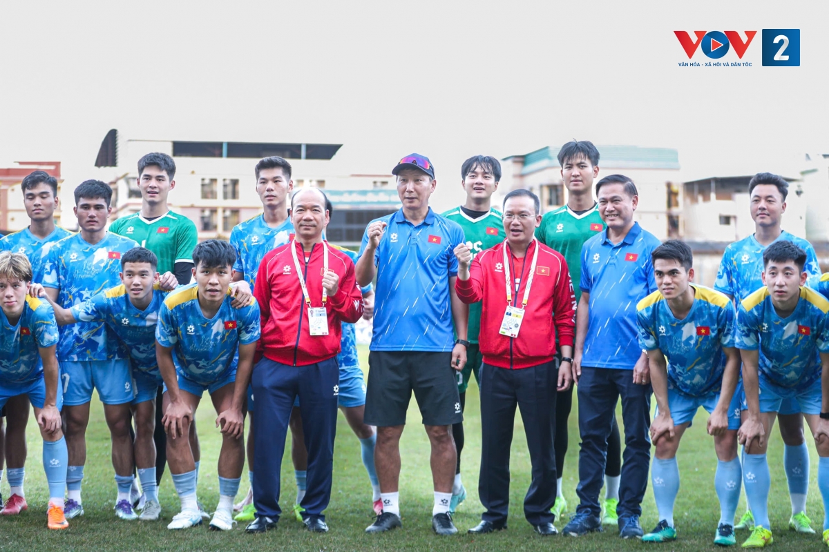 Chưa vội tiến hành họp phân tích băng hình U22 Malaysia, ông Kim Sang Sik cho các học trò rèn chiến thuật tấn công và kỹ năng dứt điểm vốn còn bộc lộ nhiều hạn chế trong trận ra quân. Cùng với việc chia đội hình đối kháng ở phạm vi hẹp, ông Kim cũng dành nhiều thời gian để điều chỉnh sự gắn kết giữa tuyến giữa với hàng công. Các chân sút chưa được ra sân ở SEA Games 33 như Viktor Lê, Ngọc Mỹ đều tỏ rõ sự quyết tâm để có thể được ra sân ở trận đấu tới.
