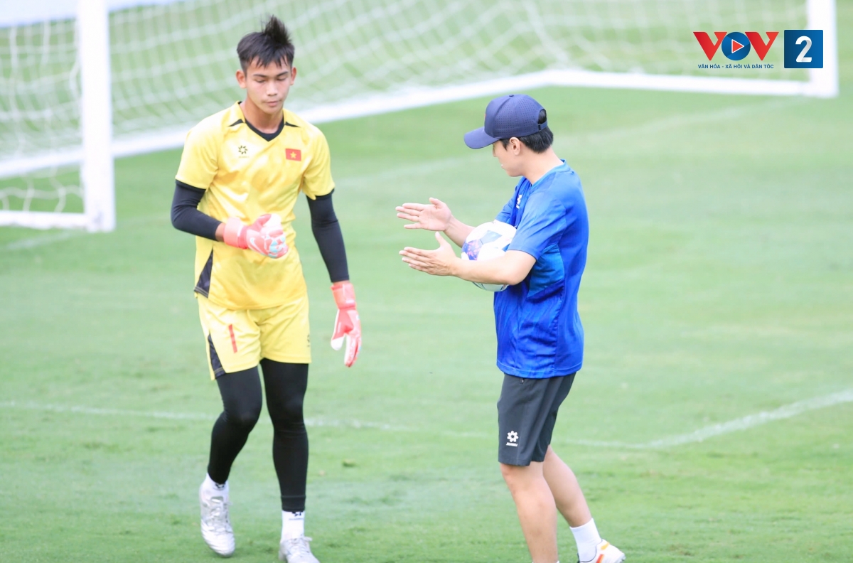 Buổi tập cũng có sự hiện diện của thủ môn trẻ Cù Lưu Hậu – cầu thủ sinh năm 2008 vừa được triệu tập vào đội tuyển U19 quốc gia. Do U19 Việt Nam được nghỉ tập, Ban huấn luyện đã tạo điều kiện để thủ môn này tham gia tập luyện cùng các đàn anh, qua đó có thêm cơ sở quan sát, đánh giá tiềm năng.