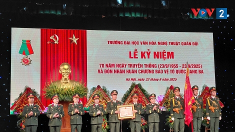 [VOV2] - Sáng nay (22/9), Trường Đại học Văn hóa Nghệ thuật Quân đội long trọng tổ chức 70 năm ngày truyền thống (23/09/1955 - 23/09/2025) và vinh dự đón nhận Huân chương Bảo vệ Tổ quốc hạng Ba.