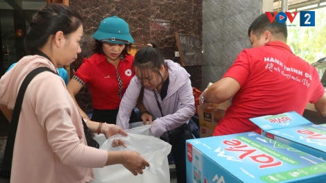 [VOV2] - Nguồn cứu trợ gồm tiền mặt, hàng hóa thiết yếu và các hộp bột lọc nước được trích từ Chiến dịch “Chung tay vượt lũ” do Trung ương Hội Chữ thập đỏ Việt Nam phát động.