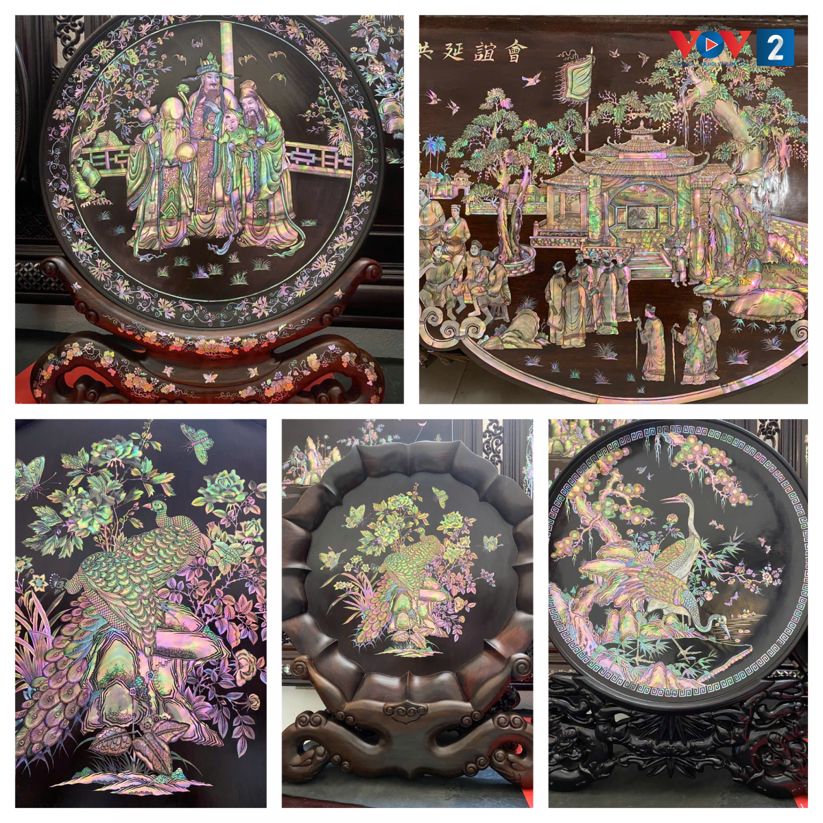 Không chỉ dừng lại ở các sản phẩm truyền thống, anh còn mở rộng ứng dụng khảm trai vào nhiều sản phẩm đời sống như guốc gỗ, vỏ điện thoại, bật lửa, đồng hồ... Đồng thời, anh chủ động đưa sản phẩm lên các nền tảng số như website, mạng xã hội để quảng bá, giúp sản phẩm làng nghề tiếp cận rộng rãi hơn với khách hàng.