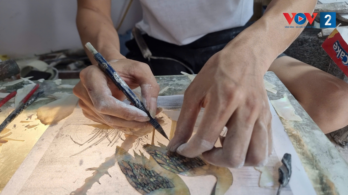 "Để tạo nên một sản phẩm khảm trai hoàn chỉnh, người thợ phải trải qua ba công đoạn chính: cưa cắt tạo hình, gắn hạ nền và hoàn thiện chi tiết. Mỗi công đoạn đều đòi hỏi sự kiên nhẫn và độ chính xác cao. Bên cạnh đó, việc lựa chọn nguyên liệu cũng đóng vai trò quan trọng, từ những loại bình dân đến các nguyên liệu cao cấp nhập khẩu, tùy thuộc vào yêu cầu và giá trị của sản phẩm", nghệ nhân Nguyễn Đình Trang chia sẻ.