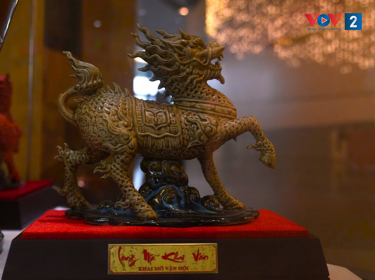 Trưng bày giới thiệu hơn 100 tài liệu, hiện vật của Bảo tàng và các nghệ nhân nhằm bảo tồn và phát huy di sản văn hoá cha ông để lại. TS Trần Hậu Yên Thế - Giảng viên Trường Khoa học liên ngành và Nghệ thuật, Đại học Quốc gia Hà Nội cho biết, Long Mã là linh vật truyền thuyết trong văn hóa Á Đông, hình dáng có sự kết hợp giữa đầu rồng, mình ngựa và mang vảy Kỳ lân. Trong dân gian, Long Mã gắn bó hoà hợp một cách tự nhiên, là biểu tượng trong tâm thức đời sống vật chất và tinh thần của người Việt. Long Mã không chỉ là con vật huyền thoại, đẹp và diệu kỳ qua trí tưởng tượng của con người mà còn là biểu tượng của sức mạnh, niềm vui, sự đẹp đẽ và điềm lành, là nguồn cảm hứng sáng tạo của nghệ nhân làng nghề Thăng Long - Hà Nội.