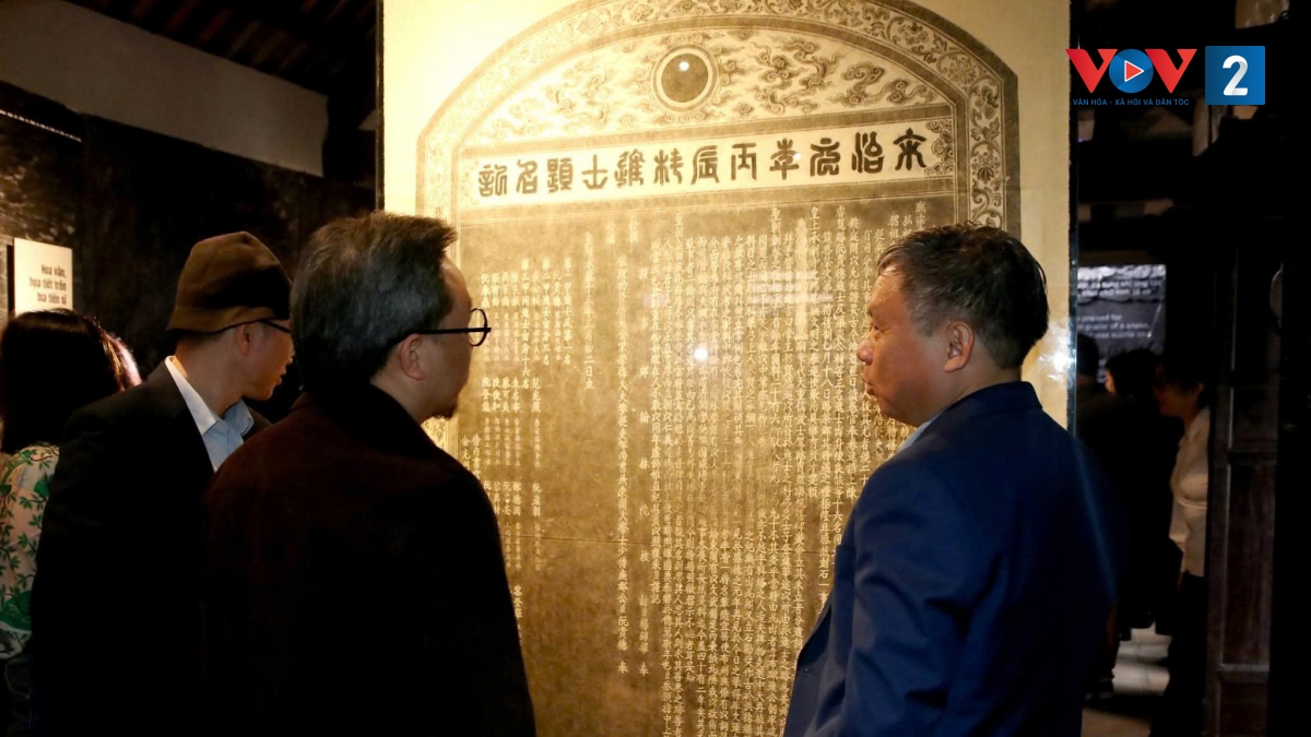 "Thông qua không gian trưng bày này, khách tham quan không chỉ khám phá các giá trị tư liệu về nội dung văn bia mà còn thấy được mỗi tấm bia Tiến sĩ thực sự là một tác phẩm nghệ thuật chạm khắc đá với nhiều đường nét mềm mại và hết sức tinh xảo".