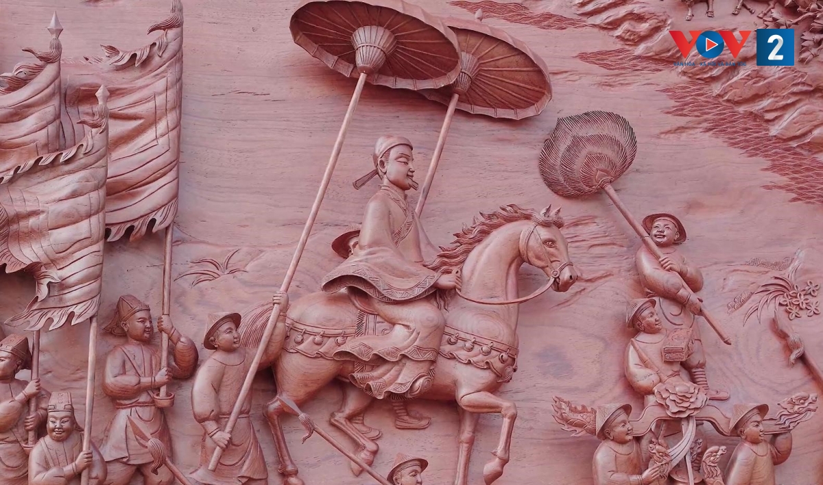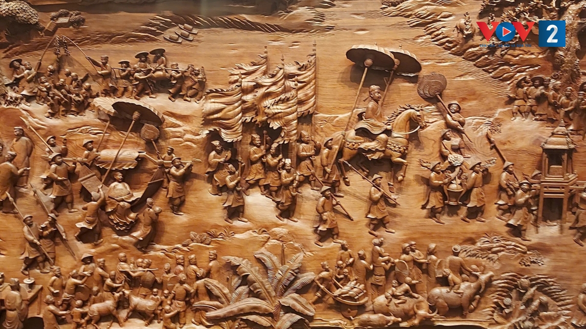 "Tác phẩm được hoàn thiện trong 27 tháng đục chạm thủ công, chưa kể 9 tháng sưu tầm tư liệu, nghiên cứu mẫu và phác thảo. Toàn bộ bức tranh khắc họa 348 nhân vật, cùng 41 cờ quạt, võng lọng, giáo mác, 55 con vật và 35 công trình kiến trúc tạo nên một tổng thể nghệ thuật phong phú về hình tượng, tinh xảo về kỹ thuật và giàu giá trị biểu tượng văn hóa. Đây là tiếng nói rõ ràng và thiết tha nhất cho khát vọng cả cuộc đời làm nghề của chúng tôi: thông qua tranh gỗ truyền tải, tôn vinh văn hóa nước nhà, ghi dấu những giá trị tinh hoa bất diệt trong dòng chảy lịch sử dân tộc".